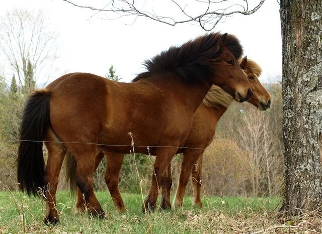 Gaeska, a mare, and Birkir, a gelding, were friendly and gentle. I learned to ride on Birkir. Nowadays I ride a chestnut mare, Saedis. Nancy and I ride four or five times a week, mainly on the dirt roads and trails leading out from our current home in Vermont.
